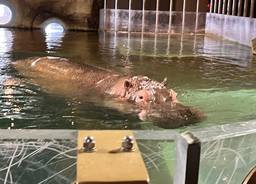 カバは水槽の中を泳いでいて、私の目の前に来た時、凄い大声と言うか音なんですが、