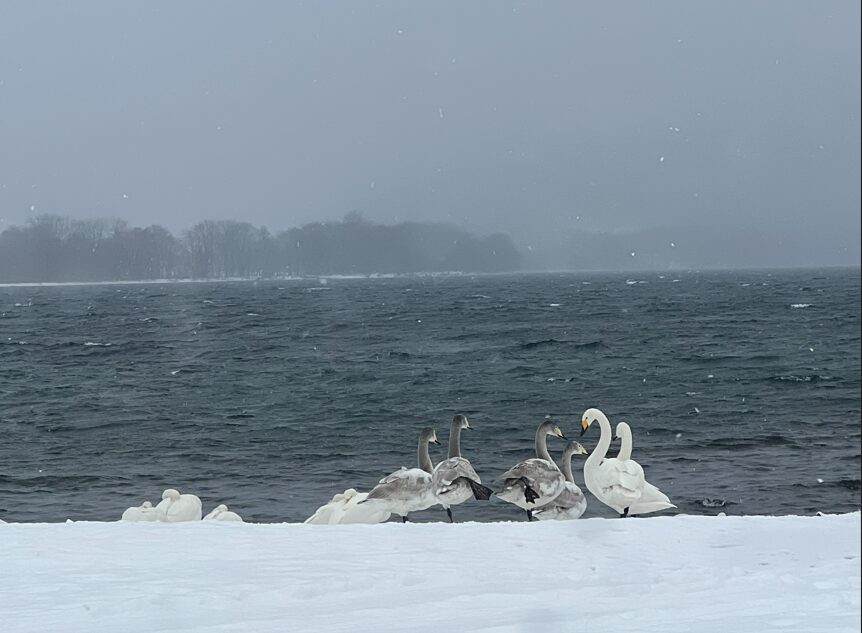 摩周湖の何倍もある大きな湖屈斜路湖へ寄って、白鳥見ながら景色を堪能して、