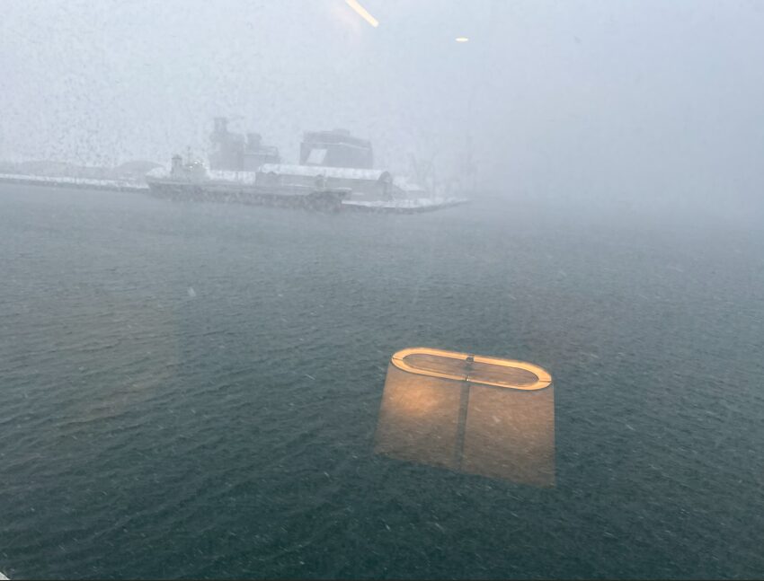 ゆられ揺られて夜が明けて、いよいよ新潟湖へ到着です。